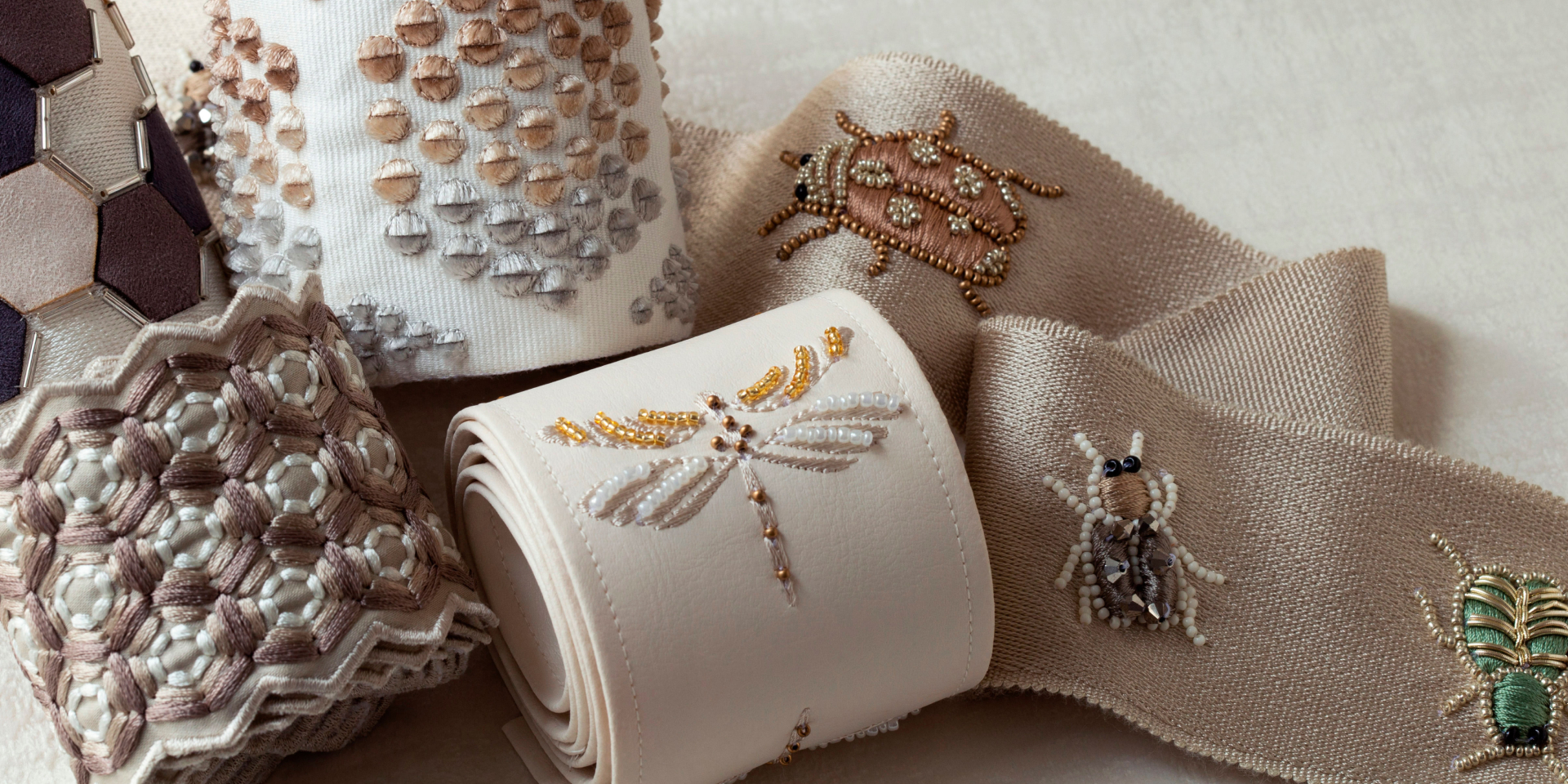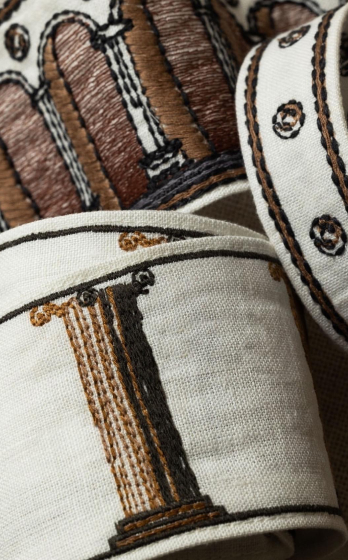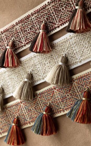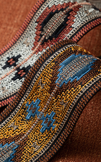 Коллекция Taos вдохновлена ремесленными традициями Юго-Запада Америки. Текстиль этого региона отличается использованием смелых, часто ярких цветов и геометрических орнаментов, изготавливается из натуральных материалов — хлопка и льна. В коллекции Taos представлена тесьма с узорами, выполненными в различных техниках — вышивка, сложное плетение, аппликации из бархата и войлока.