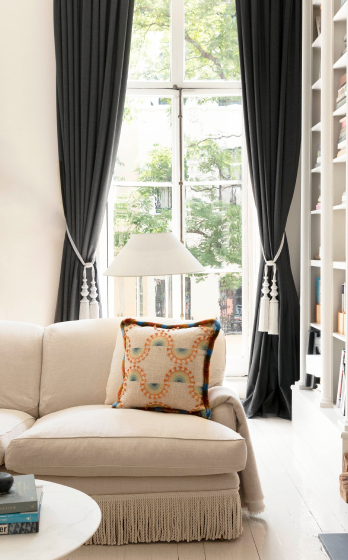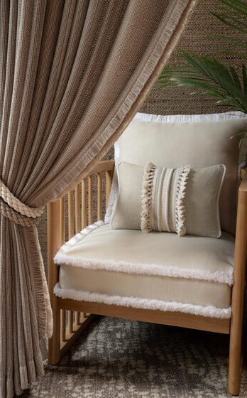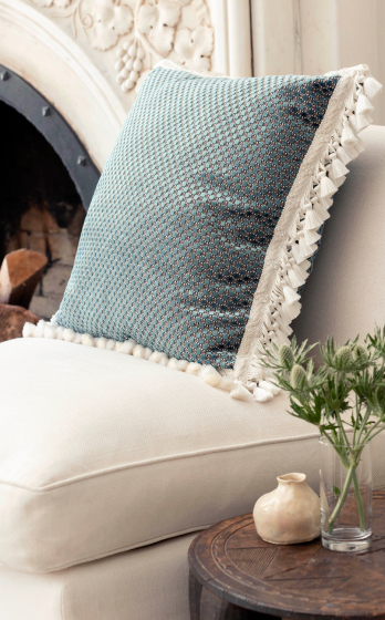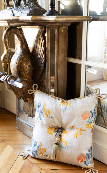 Американка Лори Вайцнер — признанный мэтр текстильного дизайна. Вдохновляясь миром цветов и сочетая различные техники ручной работы, в том числе, вышивку бисером и плиссировку, она создала нежнейшую коллекцию Bouquet. Тесьма, бахрома, кисти и подхваты с плавными тональными переходами выглядят в интерьере очень изысканно.