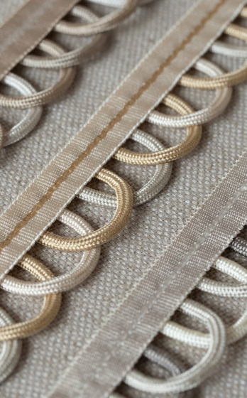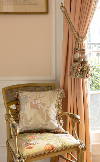 Коллекция Trianon выполнена в стиле классического декора XVIII века. Украшенная кисточками бахрома, многоцветная тесьма сложного плетения, роскошные кисти и розетки придают интерьеру толику истинного аристократизма.